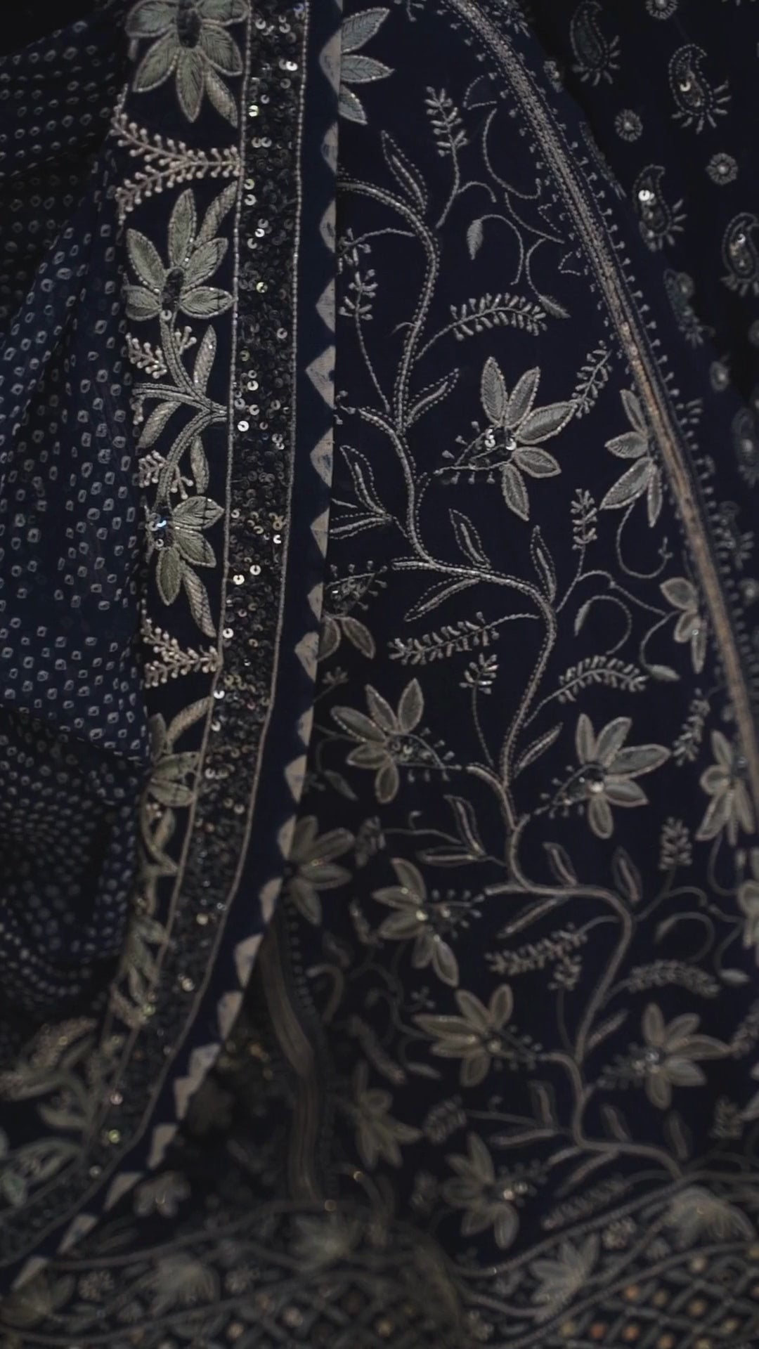 Blue chikankari and zardozi sharara set with Bandhani Duptatta.
