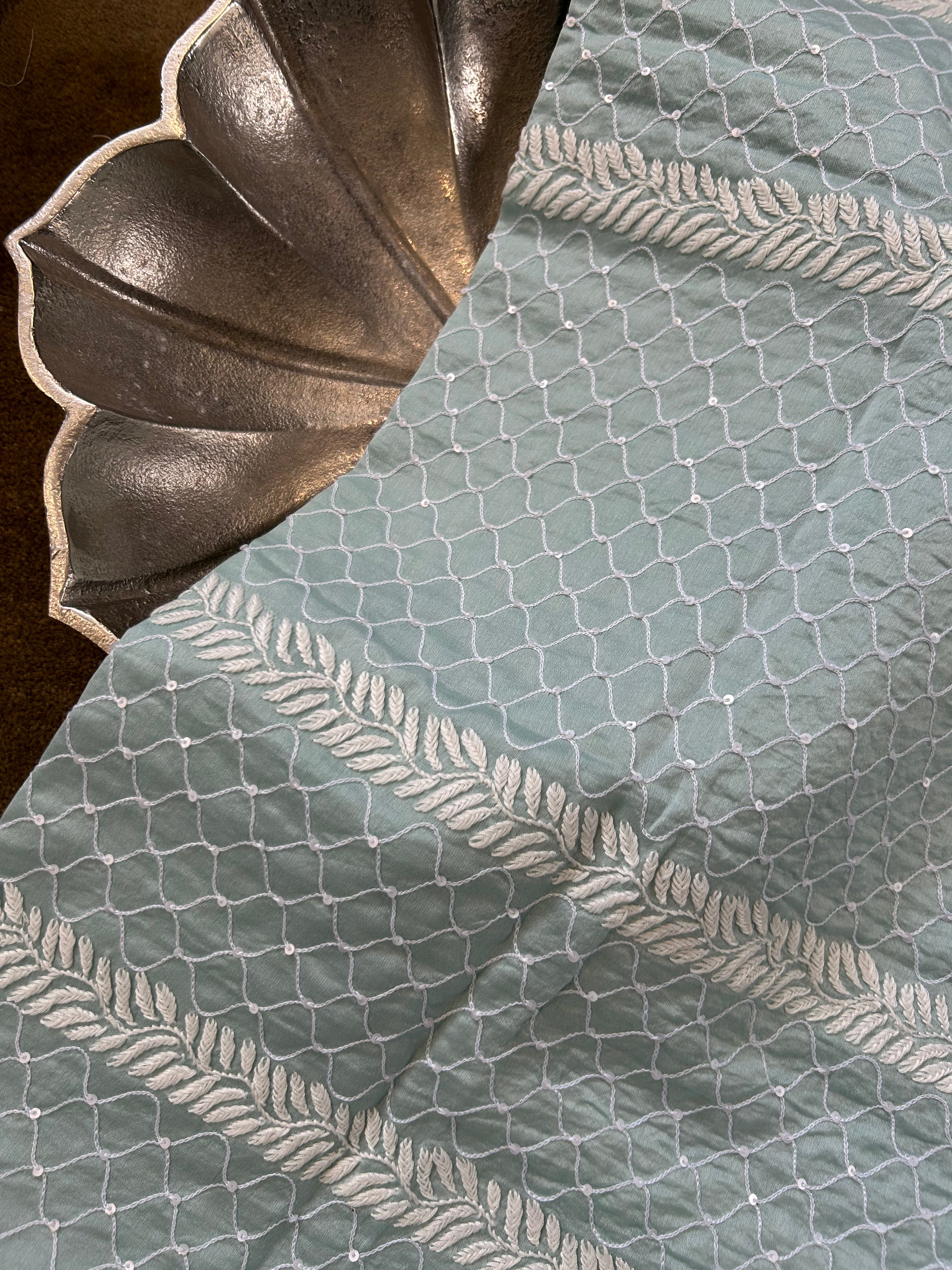 Green Chanderi Chikankari Kurta, designed with Chikankari embroidery and Beads work and statement boota on the back.