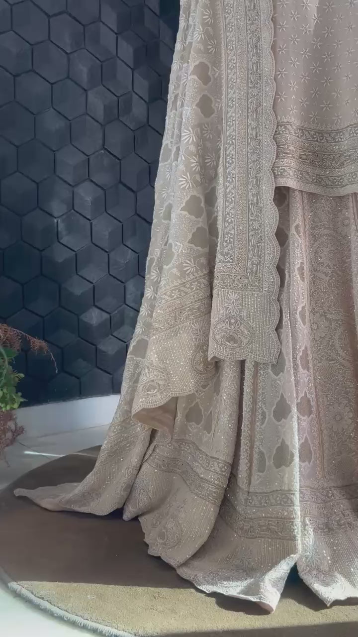 The set could also include a heavy jaal embroidery matching dupatta .This set would be ideal for festive events, weddings, or other traditional celebrations, offering a blend of elegance and grace. Colour can be customised on request.