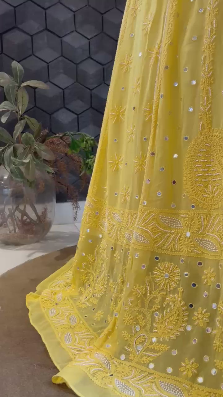 Yellow Viscose Chikankari Lehenga Set